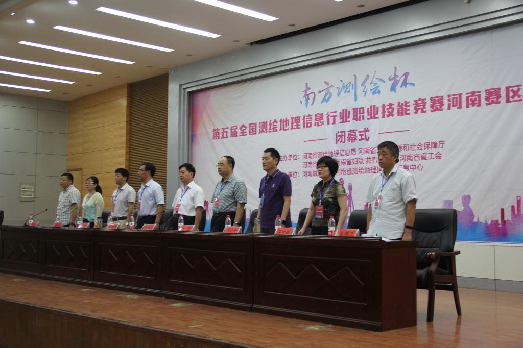 (通讯员 潘传姣)6月11日上午,第五届全国测绘地理信息行业职业技能竞赛河南赛区选拔赛在我校圆满闭幕。闭幕式在我校行政楼学术报告厅举行。我校副校长梁再培出席闭幕式并主持会议。省测绘地理信息局纪委书记何晨、省测绘地理信息局人事教育处处长马松峰、河南理工大学卢小平教授、省测绘地理信息局信息中心副主任田高力、平顶山市测绘地理信息局局长郭秋敏、测绘学院党总支书记吕鹏飞、院长张宏敏、教授何保喜出席闭幕式。竞赛裁判员、各代表队领队、观摩人员、参赛选手和我校教师、志愿者约200人参加闭幕式。