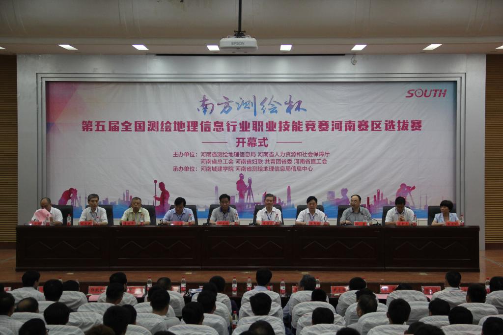 (通讯员 潘传姣)6月9日下午,“南方测绘杯”第五届全国测绘地理信息行业职业技能竞赛河南赛区选拔赛开幕式在我校行政楼学术报告厅举行。我校校长王召东、副校长梁再培、校长顾问李生平出席开幕式,副校长梁再培致欢迎辞。国家测绘地理信息局职业技能鉴定指导中心副主任邢京锁,省国土资源厅党组成员、省测绘地理信息局党委书记、局长刘济宝,省测绘地理信息局副局长毛忠民,省测绘地理信息局副局长宋新龙,省直工会主任桑文理,省妇联妇女发展部副部长张亚明,各省辖市国土资源局、测绘地理信息局领导出席开幕式。开幕式由省测绘地理信息局纪委书记何晨主持。竞赛裁判员、各代表队领队、观摩人员、参赛选手和我校教师、志愿者约200人参加开幕式。