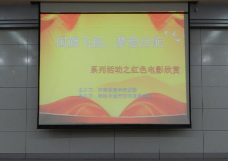 (通讯员:申曙光)为弘扬爱国主义精神,我院特于升旗周举办“国旗飞扬,梦想启航”系列活动,观看革命电影为活动之一。4月10晚7点,我院特于行政楼报告厅开展革命电影宣传周活动,我院大一大二全体学生参加了此次革命电影的观看。