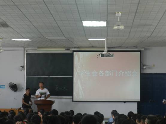 活动还未开始,教室已经人山人海了,一片沸腾。每一个同学都满怀着只有此时才拥有的那份兴奋与激动的心情,热情地交谈着。期待已久的时刻终于来到,首先,学生会主席孙连松向大一新生详细地介绍了我院学生会在过去的一年里的辉煌战果和学生会的工作和性质。接下来,各个副主席上台介绍各自分管的部门,或说、或表演、或放PPT,将本部门的风采淋漓尽致的表现了出来。同时,对于大一新生竞选我系学生会也提出一些要求及建议。