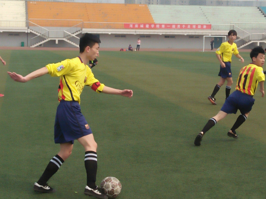 下午两时许,随着裁判的一声哨响,两支球队展开了激烈的角逐。测绘工程学院凭借巧妙的攻略,熟练的脚法,默契的配合,多次突破环旅队的防线,掌控了比赛的节奏,连续几脚打门,但都射飞或被守门员扑救成功,之后双方各有攻守。上半场双方以0:0持僵持状态。中场休息后,两院进行人员调配及战术调整,比赛进入下半场的激烈酣战。场上身着球衣的测绘队员们激情澎湃,场下观众席上测绘院观众为测绘队员们呐喊助威。起初计算机的加强防守策略效果显著,一度使测绘队难以攻破防线,但测绘队员坚持不懈,顽强拼搏,越战越勇,冲破防线力进两球。最终以2:0取得本场胜利。