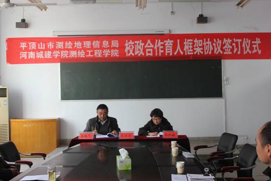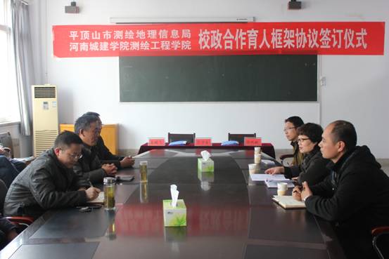 (通讯员 卫柳艳)3月10日下午,围绕校政合作育人、服务测绘地理信息事业和满足产业发展需求,平顶山市测绘地理信息局与yl7703永利集团测绘工程学院在测绘学院会议室签订了校政合作育人框架协议。市测绘局局长郭秋敏、测绘学院党总支书记吕鹏飞等出席了协议签订仪式。仪式由吕鹏飞书记主持。
