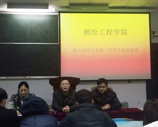(通讯员:闫超)为使新一届学生会的工作顺利开展,测绘工程学院于2016年1月4日晚在5号楼316教室召开了第八届学生会第一次全体见面会,院党总支副书记高松峰老师、团总支书记腾飞老师、学工办主任孙敬克老师出席本次会议,新一届主席团成员及全体学生会成员参加此次会议。