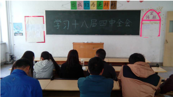 10月20日下午,测绘工程学院第二学生党支部5#110教室举行全体学生党员学习十八届四中全会精神活动。活动由支部负责人杨蕴主持,第二党支部全体学生党员参加会议。