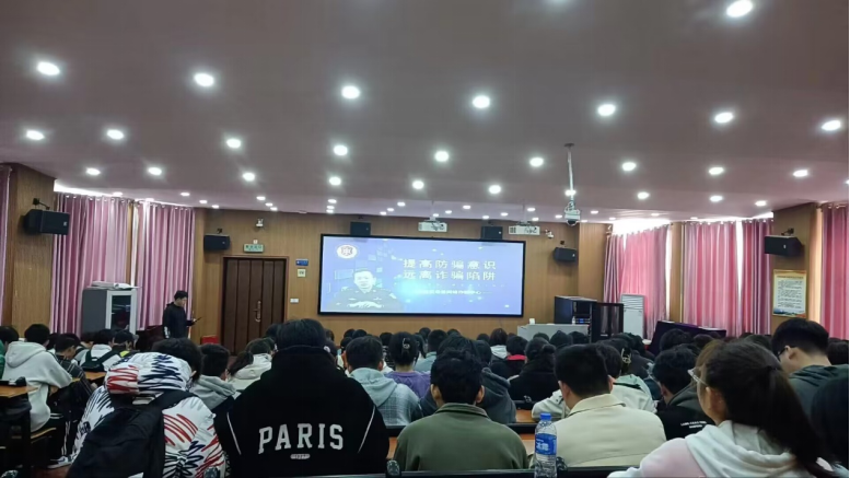 (yl7703永利集团组织同学们参加反诈培训的现场)