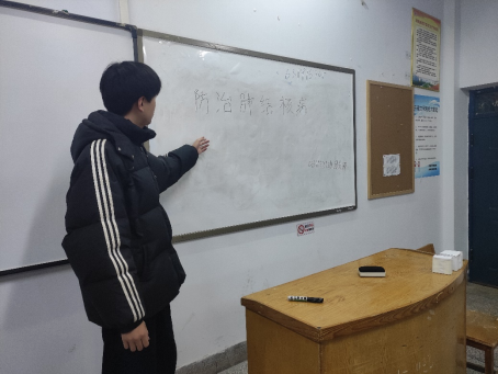 宣讲活动开始,各班团支书提问关于结核病的一些问题,班级同学分享对结核病的认识,最后由团支书总结概括如何预防结核病。做好室内通风和消毒是预防肺结核的主要方法;少去或者不去通风不良的公共场所;锻炼身体,增强体质;避免受凉和过劳,以免机体抵抗力下降。凡发现有低烧、乏力、咳嗽者,请及时到医院诊治;对与传染源密切接触者进行健康体检,发现可疑病人及结核菌感染者及时进行药物预防。