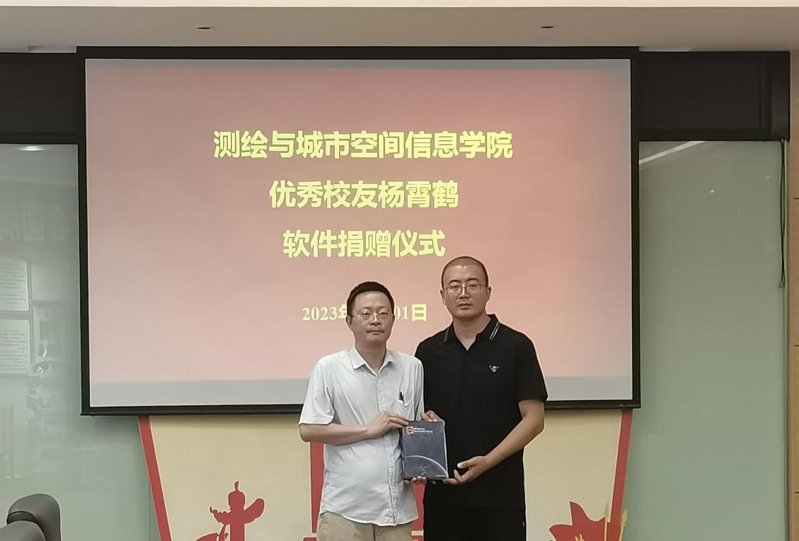 会后,优秀校友杨霄鹤借此机会向学院捐赠了一款自主研发的软件,用于学院事业发展,测绘学院院长代表学院接受了捐赠。