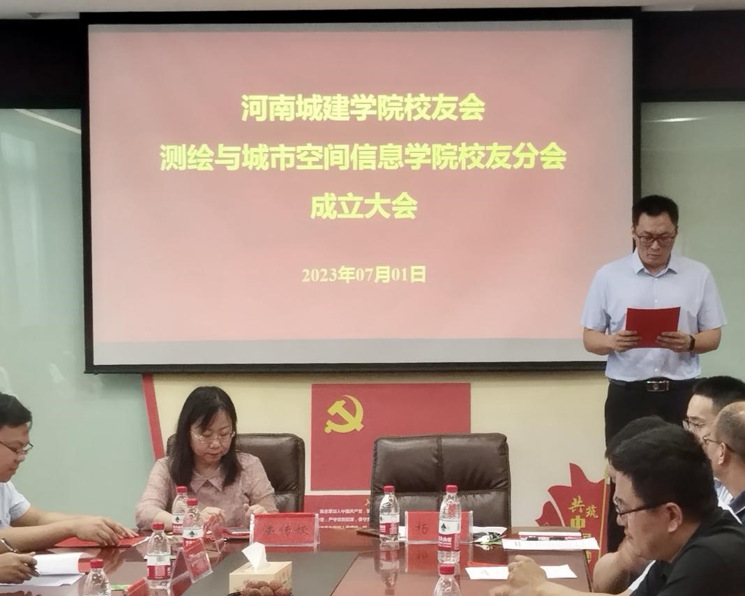 (通讯员:任昭荣)2023年7月1日,yl7703永利集团校友会yl7703永利集团校友分会成立大会在5#B209会议室召开。yl7703永利集团副校长贺国营、校友工作办公室主任闫继涛、校友工作办公室副主任杨毅、学院党委书记米启超、院长高松峰以及测绘学院其他班子成员、教师代表和来自全国各地30余位校友代表共同参会。会议由测绘学院高分辨对地观测系统数据与应用中心负责人杨锋主持。