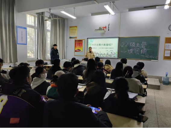 活动前期班级心理委员李凤彩对班级睡眠情况进行调查,并依据调查结果进行分析。活动现场,心理委员通过游戏的方式调解现场氛围,帮大家打开心扉。然后,根据前期睡眠调查对班级同学普遍存在的睡眠问题给予合理建议,做到具体问题具体分析。此外,在互动环节同学们积极响应,踊跃发言,把学习生活中的“苦与乐”以及心理压力舒缓“小妙招”一一分享,相互交流学习、相互加油打气,把活动氛围推向高潮。