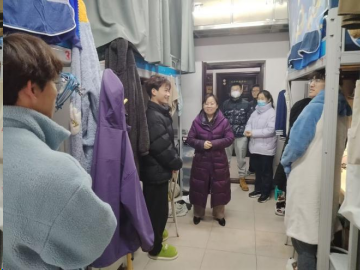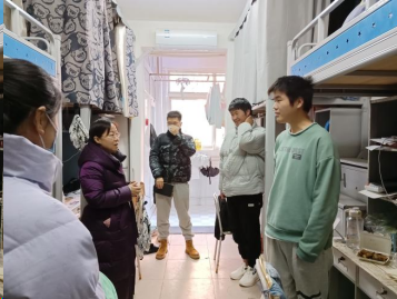 (通讯员:常成)近期平顶山地区连续出现暴雪、寒潮、低温、冻雨等极端恶劣天气。为了进一步排查我院宿舍安全隐患,拓宽工作渠道,深入了解学生诉求,开展人文关怀,不断增强宿舍安全提醒力度,密切关注学生日常动态。2023年12月22冬至日,我院值班领导潘传姣副院长、团学办主任宋自影与各年级辅导员共同走入学生宿舍,为学生近距离问诊把脉、排忧解难,送上学院的关怀与慰问。