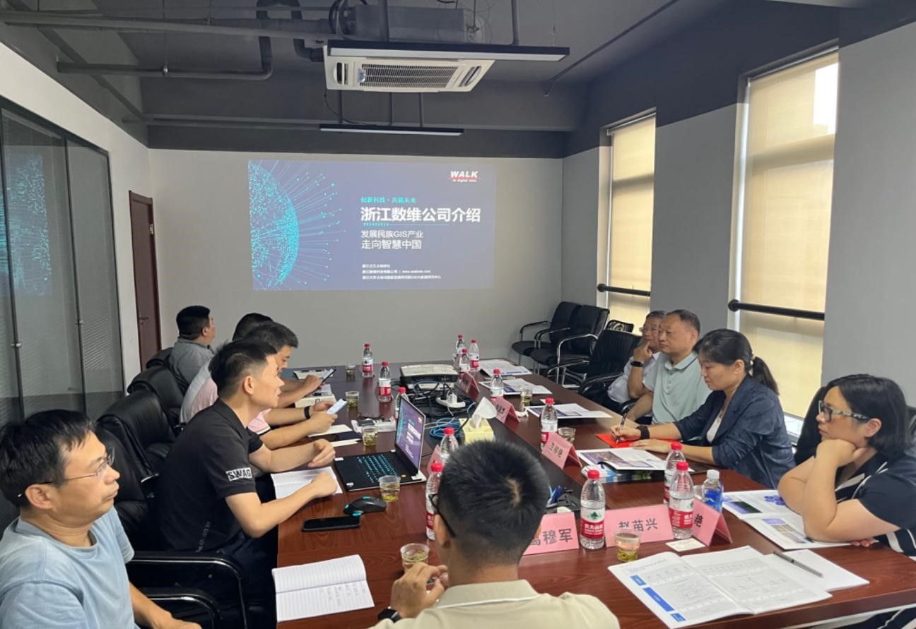 25号下午,贺国营一行前往浙江数维科技有限公司考察交流。数维公司总经理王峰及相关负责同志共同参加了座谈会。座谈会上,王峰简要介绍了公司发展的基本情况,详细介绍了公司在产学研相关工作经验、承担各类大型现场案例情况以及自主研发的软件优势等方面情况。贺国营介绍了我校和测绘学院基本情况,并对双方接下来的合作交流提出了期望。随后,双方与会人员分别就课程建设、学科建设、产业学院合作、软件技术的推广等方面进行深入的交流。