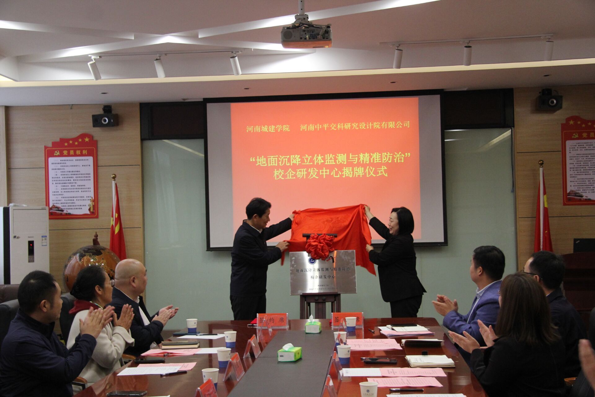 毛艳丽和罗闯旦为“yl7703永利集团—河南中平交科研究设计院有限公司地面沉降立体监测与精准防治校企研发中心”联合揭牌。