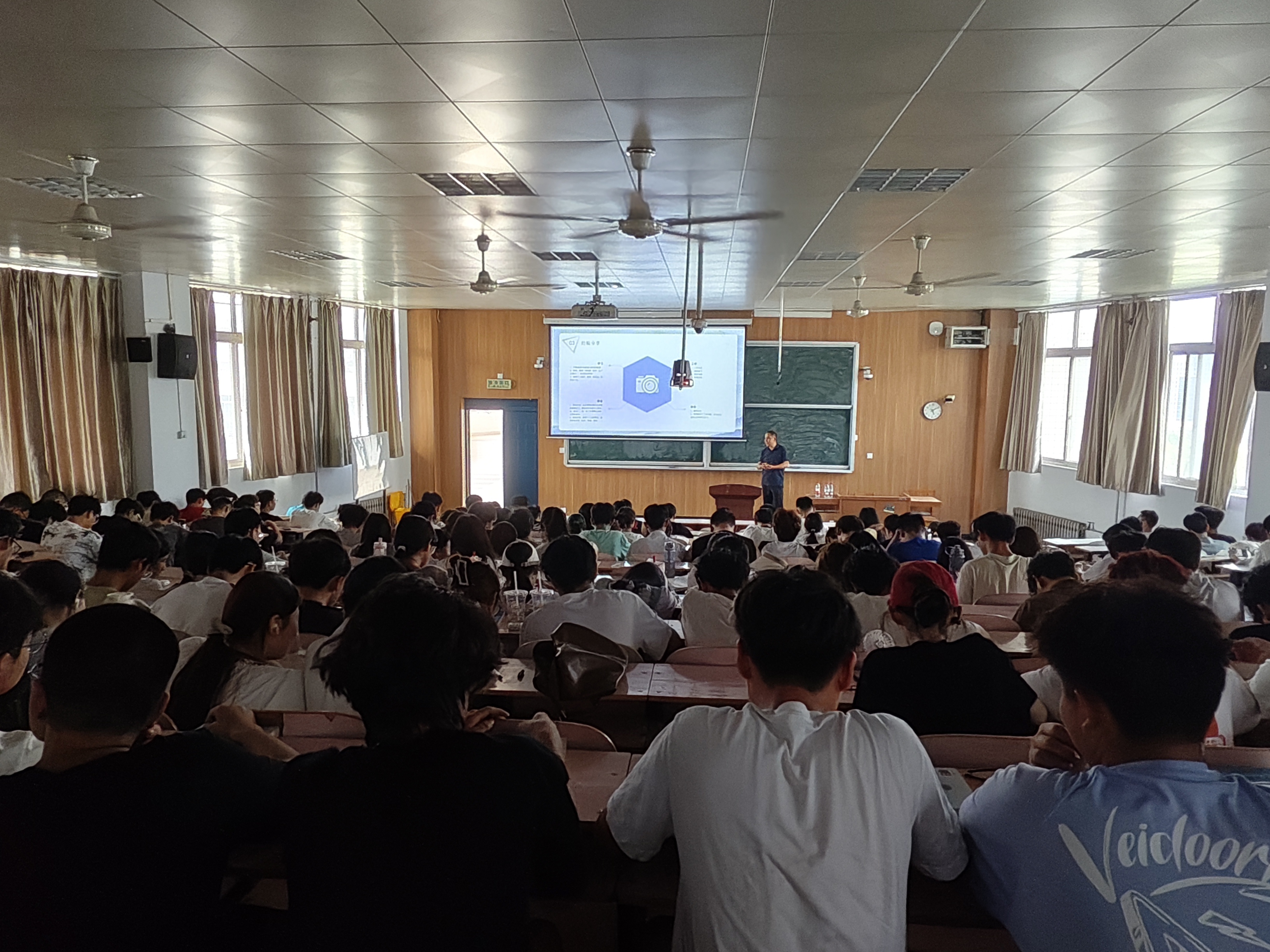 我校1998级校友、河南恒旭力创测绘工程有限公司总经理黄继永以《无所畏惧,有所作为,拥抱空间地理信息新生态》为题,回顾了自己的求学经历,讲述了其在求职、创业过程中的心得体会,为大家分享他在创新创业道路上的宝贵经验。他勉励同学们在校期间要积极锻炼身体,能吃苦耐劳,刻苦学习,注重创新思维的培养,增强创新学习能力,要适应时代发展,为今后工作创业打好基础。他以其朴实无华的语言、真挚的爱国爱校情怀及精彩的创业经历,为我校师生带来了一场极其生动和专业的报告。