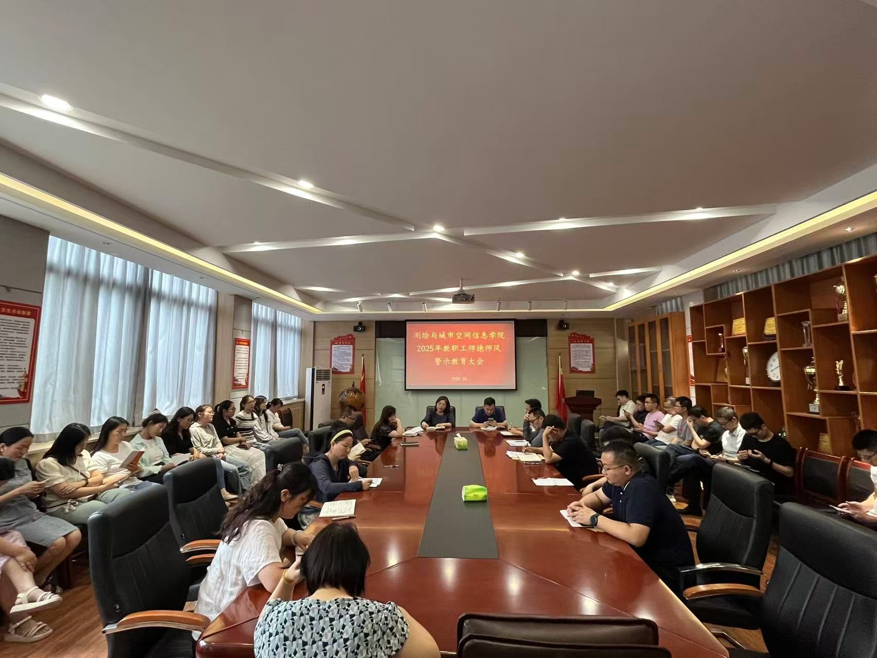 6月3日下午,我院在B209会议室顺利召开教职工师德师风警示教育大会,全体教职工参加本次会议。