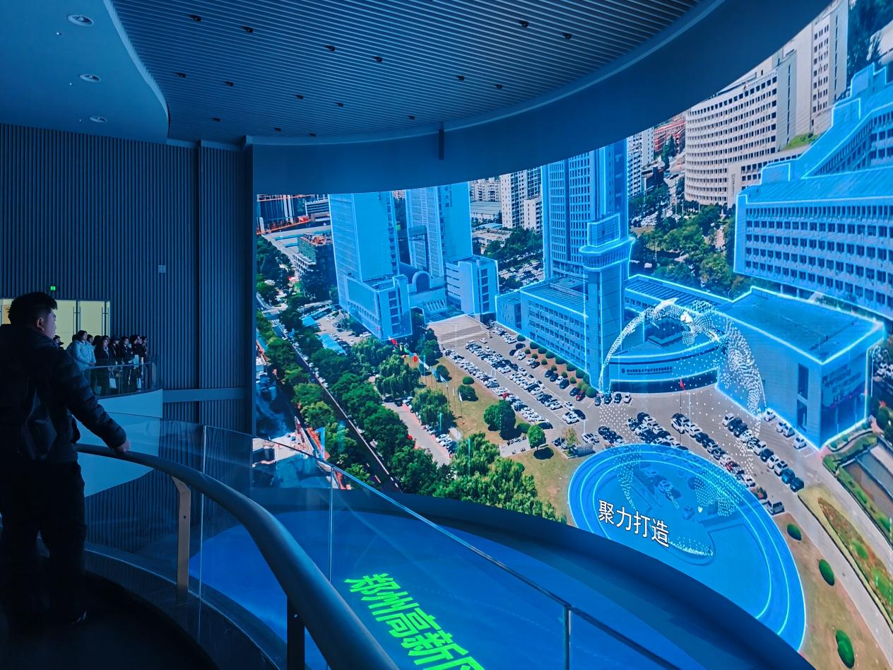 在郑州(国家)高新区智慧城市试验场,同学们实地探访了集政企交流、产业科普、运营指挥于一体的综合性场馆。作为覆盖99平方公里真实场景的创新平台,试验场“政府搭台、企业实验、多方受益”的运作模式让新生们耳目一新。通过讲解员演示,大家详细了解了32个应用场景中GIS技术、大数据在城市管理、国土规划、政务服务等领域的实践应用,特别是“一台多峰”模式下智慧治理的创新实践,让土地资源管理专业新生对“数字赋能规划”有了直观认知 。在数智治理展示区,实时更新的区域人口、产业、生态数据可视化平台,让地理信息科学专业学生深刻体会到专业技术在“善政、兴业、惠民”中的核心作用。