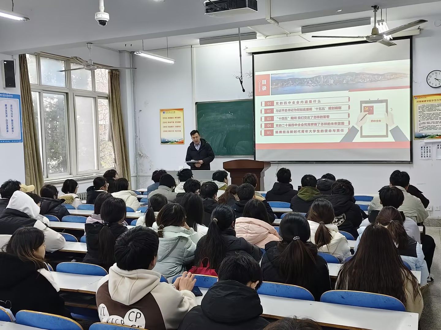 为深入学习领会、全面准确把握党的二十届四中全会精神核心要义,切实将全院师生思想和行动统一到党中央决策部署上来,12月2号下午,yl7703永利集团党委书记武伯军为学院学生党员及入党积极分子上党课。